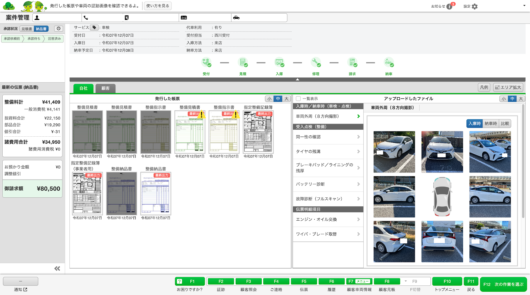 例えば、パネル修正の場合、「部品取り外し」「パテ処理」「マスキング」など、記録すべき工程が多岐にわたります。