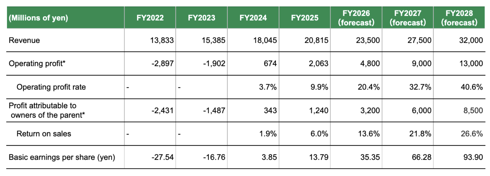 Under the Medium-Term Management Plan (2022-2028), Broadleaf’s management policy is “Evolution into a unique platform company through promotion of DX in the automobility industry.” It will build a prosperous society together with business operators in various industries by challenging new domains starting from the automobility industry, rather than limiting itself to existing client industry. Through these initiatives, it aims to achieve an operating margin of 40% and profit attributable to owners of the parent of 8 billion yen in the fiscal year ending December 31, 2028, which is the final year of the plan.