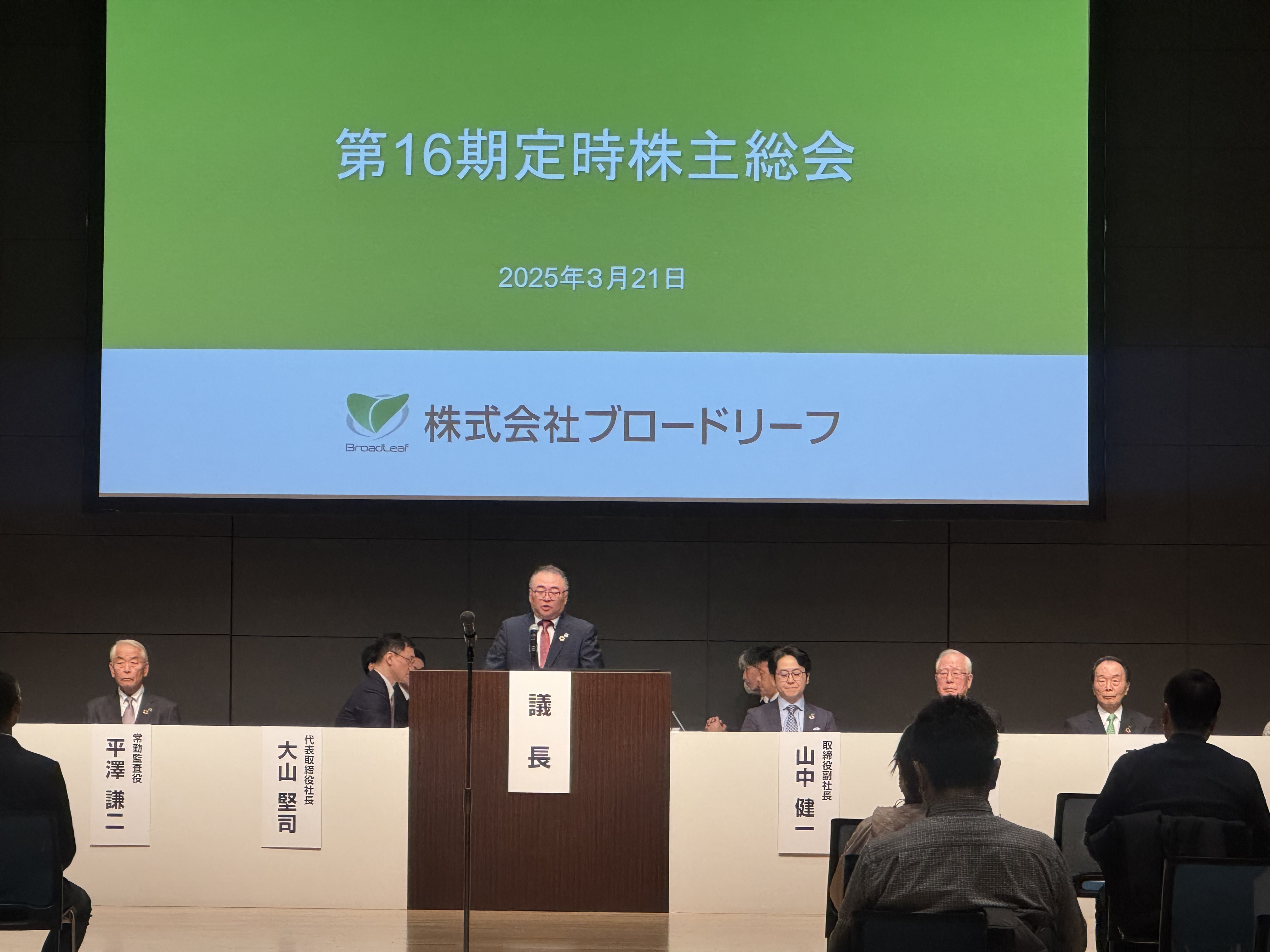 原案のとおり承認可決され、大山堅司、山中健一、鬼澤盛夫、高田坦史、田中里沙、伊串久美子の各氏が選任され、それぞれ就任いたしました。 |