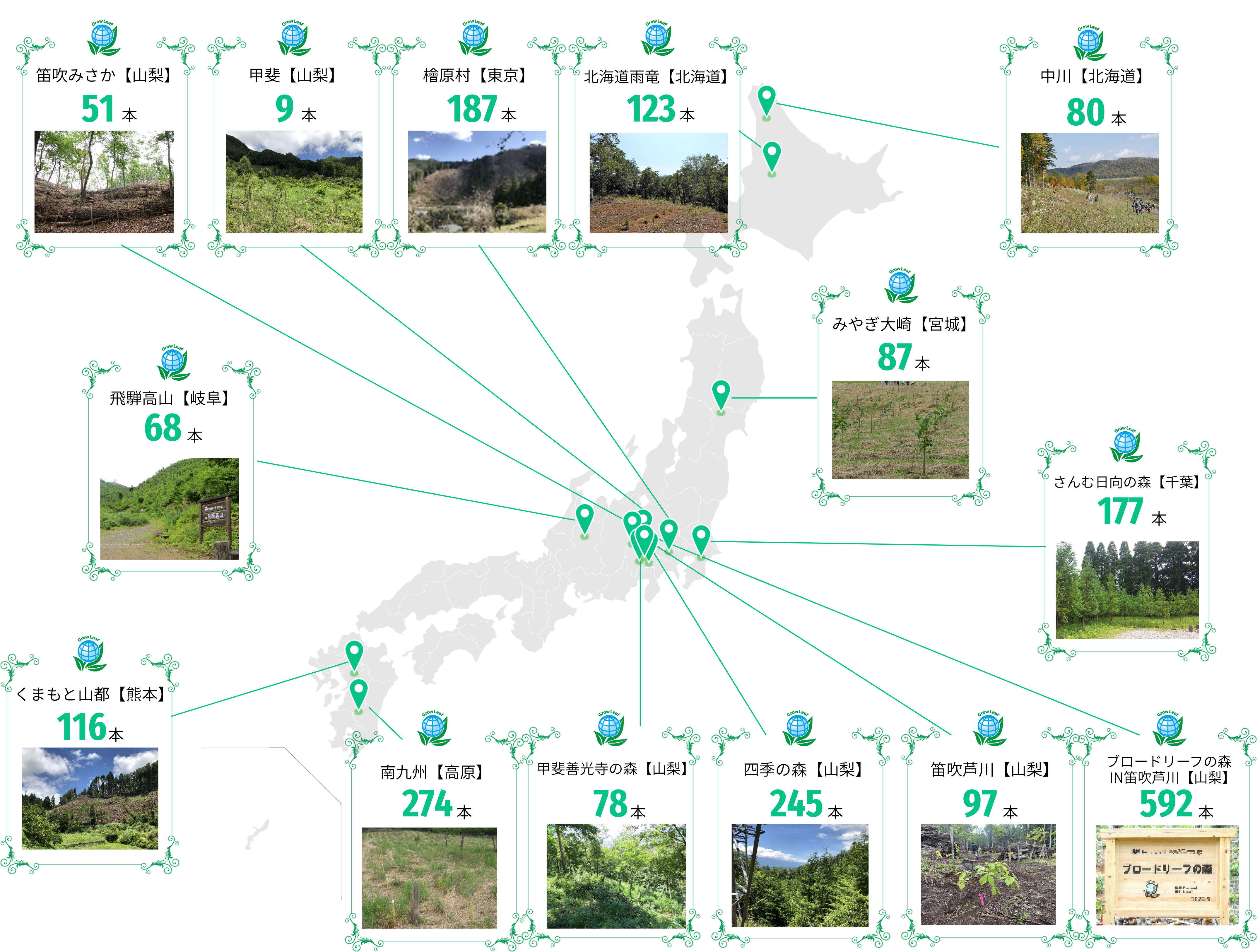 全国の植樹箇所と本数【2025年12月現在:2,184本】